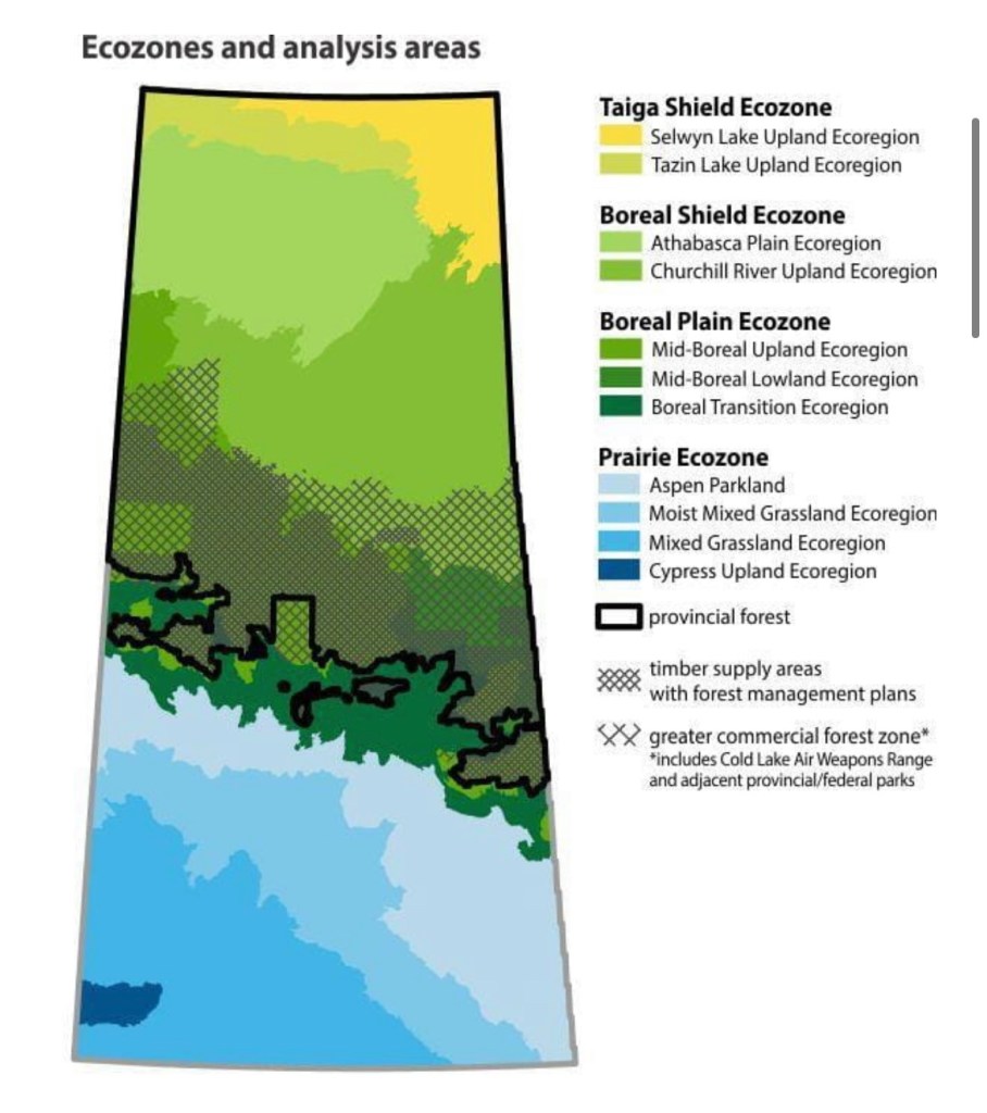 The Boreal Forest spans across Saskatchewan and creates a border of Provincial Forestry (shown above by the black line). As you can see in the comparison above, the light pollution (shown as colours on the map) ends near the provincial forestry line. This means half of the province enjoys some of the darkest skies on earth!